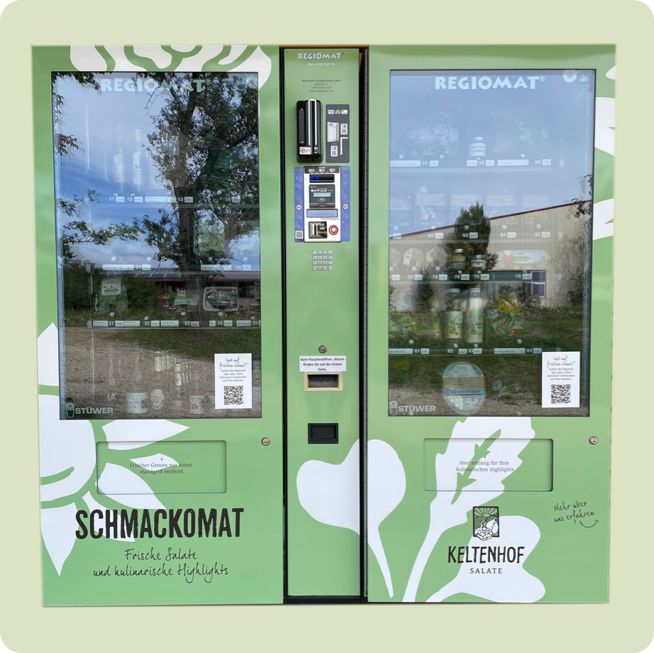 Auf dem Keltenhof bauen wir mit Begeisterung Salate, Kräuter und Blüten an. Damit Sie unser reichhaltiges Sortiment kennen lernen können, haben wir unseren Automaten „Schmackomat“ aufgestellt. Einfach vorbei kommen, stöbern und unsere Produkte erwerben und genießen! Wir freuen uns auf Sie!